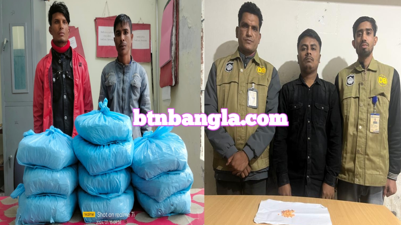 কিশোরগঞ্জ জেলার নিকলী থানার এসআই (নি:) মাহমুদুর রহমান গোপন সংবাদের ভিত্তিতে সঙ্গীয় অফিসার-ফোর্সের সহায়তায় ১৫/০১/২০২৪ খ্রি: ০৬.২০ ঘটিকায় নিকলী থানাধীন ছাতিরচর সাকিনস্থ ছাতিরচর পূর্ব গুদারাঘাটে ফাঁকা জায়গায় অভিযান পরিচালনা করে আসামি ১। মোঃ মোহন (২৪), পিতা- আ: মালেক, সাং-রহমতপুর, থানা- আজমেরীগঞ্জ, জেলা- হবিগঞ্জ, ২। মো: জাহাঙ্গীর চৌধুরী (৩০), পিতা- মৃত গিয়াস উদ্দিন চৌধুরী, সাং-ছাতিরচর, থানা-নিকলী, জেলা-কিশোরগঞ্জকে গ্রেফতার করে এবং আসামিদ্বয়ের হেফাজতে থাকা সর্বমোট ১০ (দশ) কেজি গাঁজা নামক মাদকদ্রব্য উদ্ধার করে ১৫/০১/২০২৪ খ্রি: ০৬.৪০ ঘটিকায় জব্দ তালিকামূলে জব্দ করে হেফাজতে নেন।