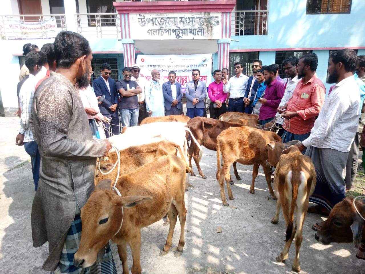 ইলিশ সম্পদ উন্নয়ন ও ব্যবস্থাপনা প্রকল্পের আওতায় নিবন্ধিত সুফলভোগী জেলেদের মাঝে বিকল্প কর্মসংস্থান সৃষ্টির লক্ষে গলাচিপা উপজেলার প্রান্তীক জেলেদের মাঝে বকনা বাছুর বিতরণ করা হয়েছে।