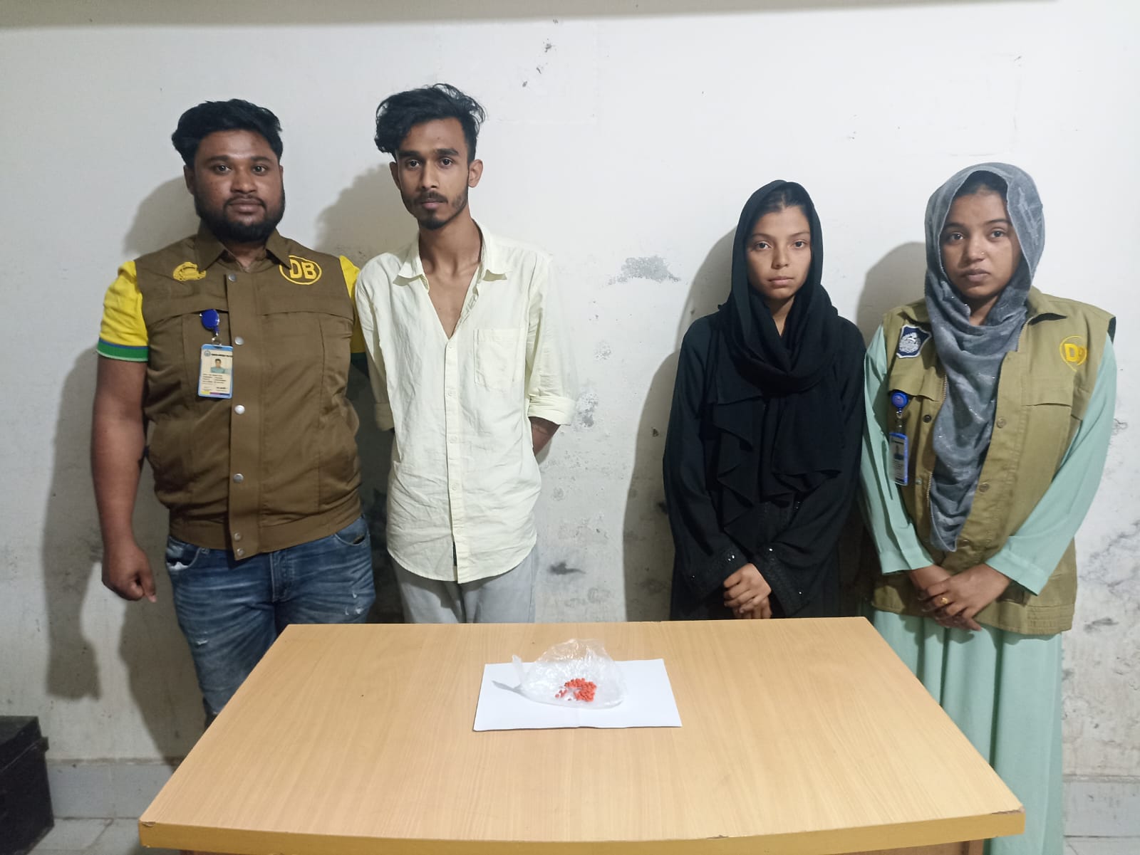 কিশোরগঞ্জ জেলা গোয়েন্দা শাখা (ডিবি) এসআই (নিঃ) মো: মোবারক হোসেন গোপন সংবাদের ভিত্তিতে সঙ্গীয় অফিসার-ফোর্সের সহায়তায় ০১/০৩/২০২৪ খ্রি: ১৮.২০ ঘটিকায় কিশোরগঞ্জ সদর থানাধীন কিশোরগঞ্জ সদর থানাধীন গাইটাল জেমিনি রোড সাকিনস্থ পরশ ভবনের সামনে পাকা রাস্তার উপর অভিযান পরিচালনা করে আসামি ১। আনিকা (১৯), স্বামী- ইব্রাহিম খলিল, স্থায়ী সাং- চরপাড়া (মেরেঙ্গা বাজার সংলগ্ন), থানা- নান্দাইল, জেলা- ময়মনসিংহ, পিতা- মৃত নরুল ইসলাম ফোটন, অস্থায়ী সাং- হোগলাকান্দি, থানা- হোসেনপুর, জেলা- কিশোরগঞ্জ, ২। মোঃ পিয়েল আহমেদ শুভ (২০), পিতা- মোঃ জামাল উদ্দিন, সাং- কিসমত কচুরী, খানা- নান্দাইল, জেলা- ময়মনসিংহকে গ্রেফতার করে এবং আসামিদ্বয়ের হেফাজতে থাকা সর্বমোট ১৪০ (একশত চল্লিশ) পিস ইয়াবা ট্যাবলেট নামক মাদকদ্রব্য উদ্ধার করে ০১/০৩/২০২৪ খি: ১৮.৩০ ঘটিকায় জব্দ তালিকামূলে জব্দ করে হেফাজতে নেয়। এ ঘটনায় ধৃত আসামিদ্বয়ের বিরুদ্ধে কিশোরগঞ্জ সদর থানায় মাদকদ্রব্য নিয়ন্ত্রণ আইনে মামলা রুজু করা হয়েছে।