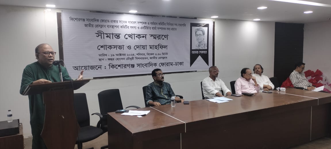 শনিবার (১৯ অক্টোবর) বিকালে জাতীয় প্রেসক্লাবে জহুর হোসেন চৌধুরী মিলনায়তনে ‘কিশোরগঞ্জ সাংবাদিক ফোরাম-ঢাকা’ আয়োজিত ‘সদ্য প্রয়াত সাংবাদিক এনটিভির বার্তা সম্পাদক, জাতীয় প্রেসক্লাব ব্যবস্থাপনা কমিটির সদস্য ও কিশোরগঞ্জ সাংবাদিক ফোরাম ঢাকার সাবেক সাধারণ সম্পাদক সীমান্ত খোকন স্মরণে শোকসভা ও দোয়া মাহফিলে প্রধান অতিথির বক্তব্যে তিনি এসব কথা বলেন।