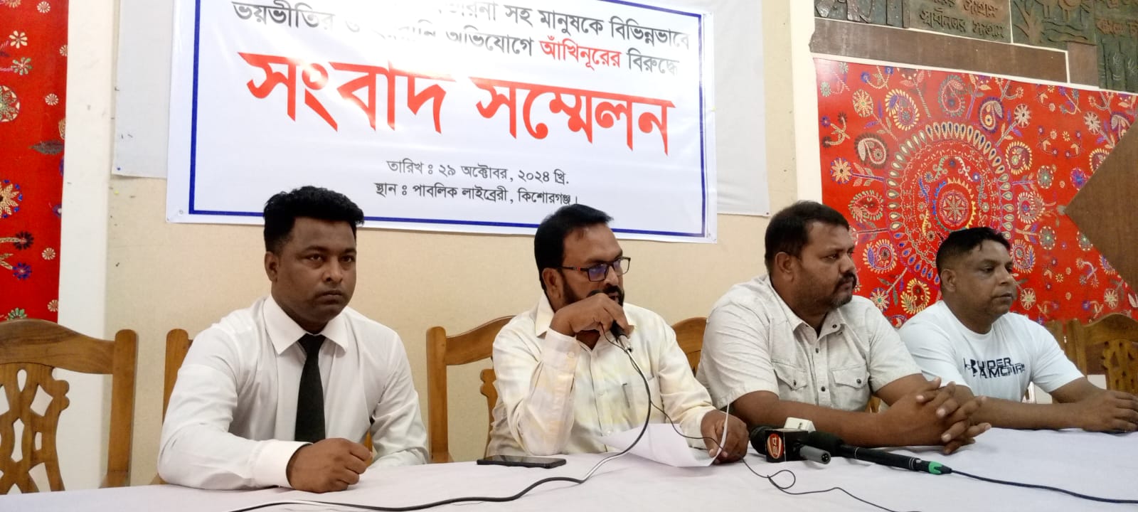 কিশোরগঞ্জ জেলার মিঠামইনের আওয়ামী লীগের সাংগঠনিক সম্পাদক বিল্লালের পরিবারের লোকজন স্থানীয় প্রভাব বিস্তার ও সেচ প্রকল্পের আধিপত্য বিস্তারকে কেন্দ্র করে আখিনুর বিভিন্ন ধরনের হয়রানি করে চলছে এমন অভিযোগ এনে সংবাদ সম্মেলন করেন মিঠামইন উপজেলা বিএনপি নেতা আফতাব উদ্দিন ।