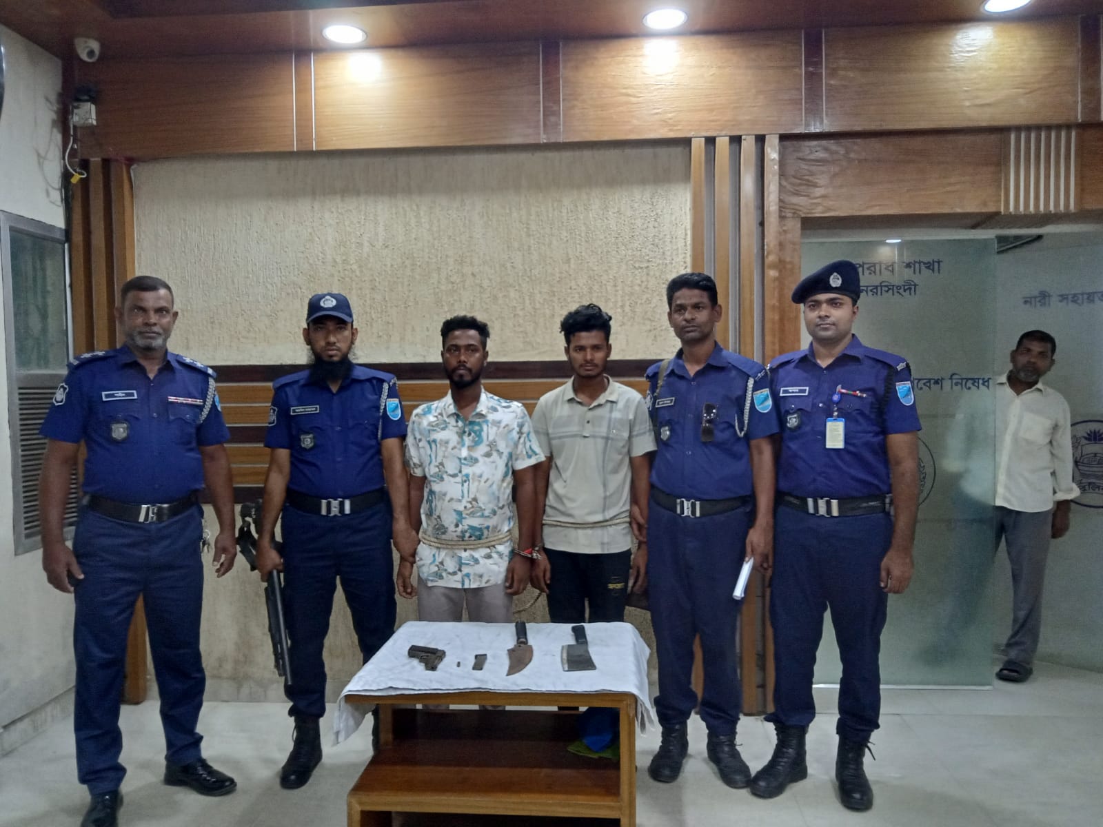 নরসিংদীর সদর মডেল থানা এলাকায় ডাকাতি প্রস্তুতি কালে অস্ত্রসহ দুই ডাকাতকে গ্রেফতার করেছে।