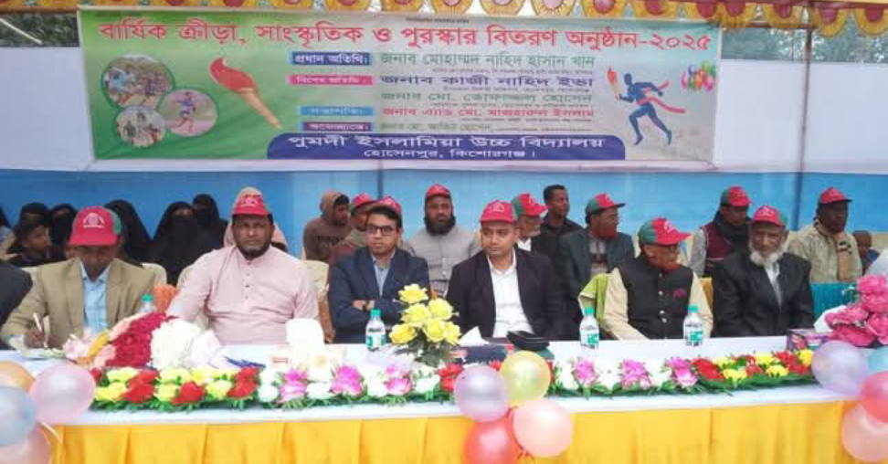 কিশোরগঞ্জে হোসেনপুর উপজেলা পুমদী ইসলামীয়া উচ্চ বিদ্যালয়ের বার্ষিক ক্রীড়া প্রতিযোগিতা পুরস্কার বিতরণ ও সাংস্কৃতিক অনুষ্ঠান অনুষ্ঠিত হয়।