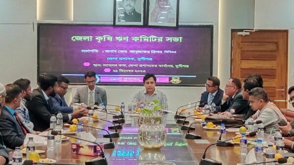 ওসমান গনি মুন্সীগঞ্জ জেলা প্রতিনিধিঃ মুন্সীগঞ্জ জেলা কৃষি ঋণ কমিটির মাসিক সভা জেলা প্রশাসকের সম্মেলন কক্ষে অনুষ্ঠিত হয়। উক্ত সভায় সভাপতিত্ব করেন অতিরিক্ত জেলা প্রশাসক(সার্বিক)তৌহিদ এলাহী।জেনারেল সার্টিফিকেট অফিসার,উপস্থিত ছিলেন,সদস্য সচিব,বাংলাদেশ