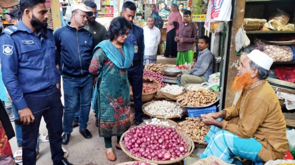 ওসমান গনি মুন্সীগঞ্জ জেলা প্রতিনিধিঃ মুন্সীগঞ্জের সিরাজদিখানে পেঁয়াজের অস্বাভাবিক দাম বৃদ্ধি রোধে উপজেলার বিভিন্ন পেঁয়াজের বাজার মনিটরিং করেছে উপজেলা প্রশাসন।রবিবার ১০ ডিসেম্বর সন্ধ্যায় উপজেলার সিরাজদিখান বাজারের পেঁয়াজের দোকান গুলোতে উপজেলা