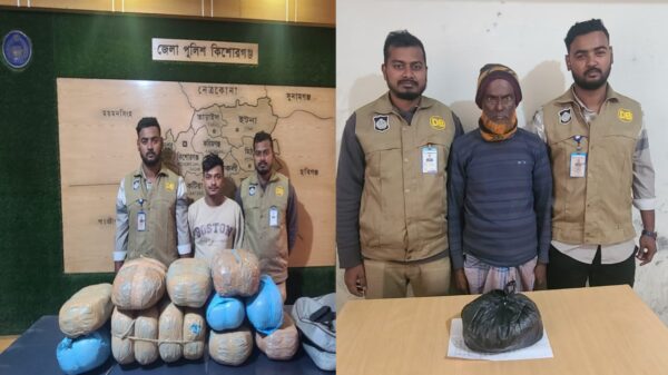 কিশোরগঞ্জ জেলা গোয়েন্দা শাখা (ডিবি) এসআই (নিঃ)/মোঃ আব্দুল জব্বার গোপন সংবাদের ভিত্তিতে সঙ্গীয় অফিসার-ফোর্সের সহায়তায় ২৯/০১/২০২৪ খ্রি: ২২.১৫ ঘটিকায় ভৈরব থানাধীন ভৈরব বাজার কৃষিপট্টি সাকিনস্থ ভূমি অফিসের সামনে পাকা রাস্তার