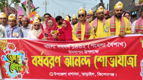 স্টাফ রিপোর্টার: তাড়াইল উপজেলা প্রশাসনের উদ্যোগে সোমবার (১৪ এপ্রিল) সকাল সাড়ে ৯টার দিকে তাড়াইল উপজেলা পরিষদ বিদ্যানিকেতন থেকে একটি বর্ণাঢ্য আনন্দ শোভাযাত্রা বের হয়। শোভাযাত্রাটি তাড়াইল বাজার প্রধান, প্রধান সড়কগুলো