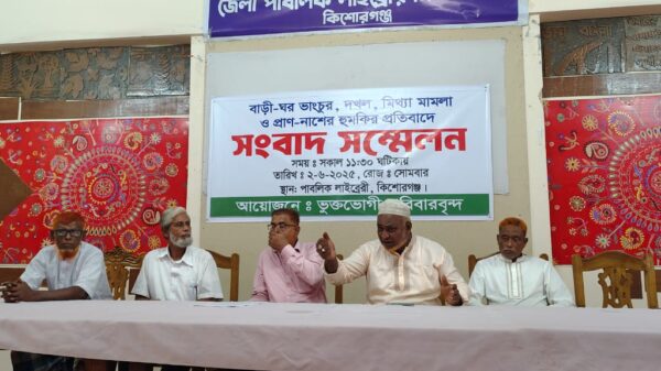 নিজস্ব প্রতিনিধি: কিশোরগঞ্জ জেলার তাড়াইল উপজেলার গুণা বাগপাড়া গ্রামের বাসিন্দা মো. রফিকুল ইসলাম (জোতি) পরিবারসহ দখল, লুটপাট ও প্রাণনাশের হুমকিতে দীর্ঘদিন যাবৎ নিরাপত্তাহীনতায় ভুগছেন বলে অভিযোগ করেছেন। গতকাল সোমবার (২