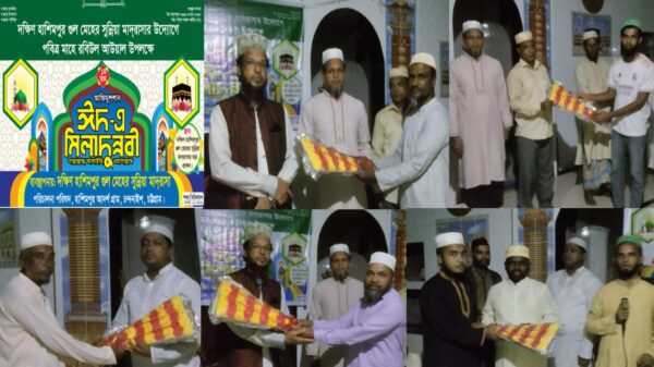 নুহসিল মুস্তফা জাহাঙ্গীর, চট্টগ্রাম থেকে, চট্টগ্রাম জেলার চন্দনাইশ উপজেলাস্থ দক্ষিণ হাসিমপুর গুল মেহের সুন্নিয়া মাদ্রাসায় ১৯ শে সেপ্টেম্বর ১২ ই রবিউল আউয়াল উপলক্ষে এক আজিমুশশান ঈদে মিলাদুন্নবী (স:) এর আয়োজন