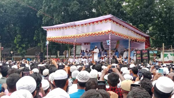 আসাউজ্জামান জুয়েল: বাংলাদেশ খেলাফত মজলিস কিশোরগঞ্জ জেলা শাখা আয়োজিত গণসমাবেশে প্রধান অতিথির বক্তব্য দিচ্ছেন দলটির মহাসচিব মামুনুল হক। শনিবার (২৮ সেপ্টেম্বর) সন্ধ্যায় বাংলাদেশ খেলাফত মজলিস কিশোরগঞ্জ জেলা শাখার আয়োজনে