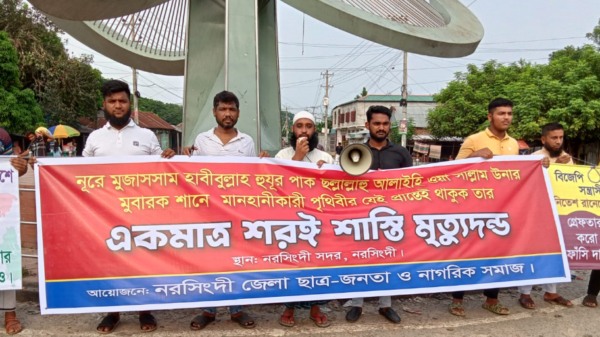 মোঃ মাসুদ নরসিংদী প্রতিনিধি আখেরী নবী হুজুর পাক (সাল্লাল্লাহু আলাইহি ওয়া সাল্লাম,) যার সৃষ্টি না হলে পৃথিবীর কোন কিছুই সৃষ্টি হতো না, আমাদের প্রাণপ্রিয় নবীকে নিয়ে ভারতের মুশরিক রামগিরি নামক