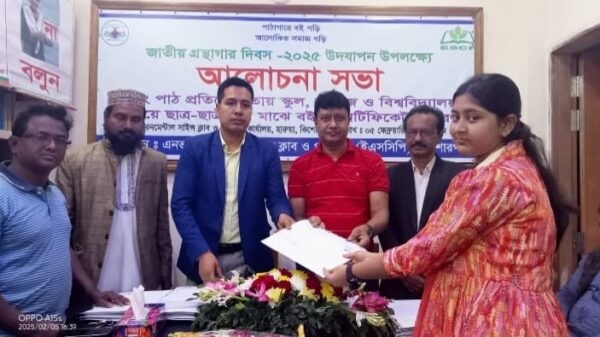 মিজানুর রহমান রিপনঃ ৫ই জানুয়ারি বুধবার এনভাইরনমেন্টাল সাইন্স ক্লাব ও পাঠাগার কিশোরগঞ্জের উদ্যোগে জাতীয় গ্রন্থাগার দিবস-২০২৫ উদযাপন উপলক্ষ্যে এনভাইরনমেন্টাল সাইন্স ক্লাব ও পাঠাগার কার্যালয়, কিশোরগঞ্জে এক আলোচনা সভা এবং পাঠ