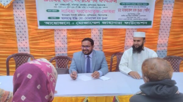 কিশোরগঞ্জে কুলিয়ারচর উপজেলার চক্ষু চিকিৎসা ক্যাম্প অনুষ্ঠিত হয়েছে। কিশোরগঞ্জ জেলার কুলিয়ারচর উপজেলার ফরিদপুরের ডাক্তার বাড়ীতে মোজাম্মেল জাহানারা ফাউন্ডেশনের উদ্যোগে মঙ্গলবার ২১ জানুয়ারী চক্ষু চিকিৎসা ক্যাম্প অনুষ্ঠিত হয়। বিনামূল্যে অত্যাধুনিক যন্ত্রপাতি