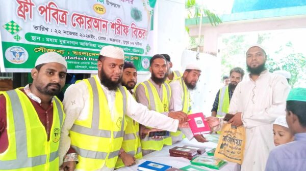 ডেস্ক নিউজ: শুক্রবার ২২শে নভেম্বর ২০২৪ ইং শুক্রবার বেলা ২ ঘটিকার সময় বাংলাদেশ সরকারের মাননীয় ধর্ম উপদেষ্টা আ.ফ.ম খালিদ হোসেন এর হাতে ফ্রী কুরআন বিতরণ প্রোগ্রাম উদ্বোধন এর মাধ্যমে বাংলাদেশ