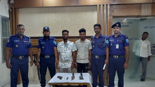 নরসিংদী প্রতিনিধি মোঃ মাসুদ মিয়া: নরসিংদীর সদর মডেল থানা এলাকায় ডাকাতি প্রস্তুতি কালে অস্ত্রসহ দুই ডাকাতকে গ্রেফতার করেছে। ১টি বিদেশী পিস্তল ও ১ রাউন্ড গুলি ও চাপাতিসহ দুই ডাকাতকে