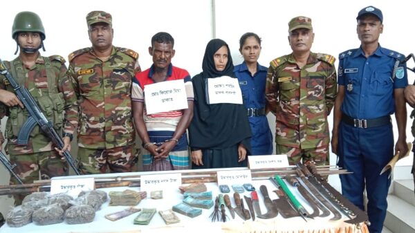 বাজিতপুর সংবাদদাতা: কিশোরগঞ্জের বাজিতপুর উপজেলার বলিয়ার্দী ইউনিয়নের শিমুলতলা গ্রামে পৃথক অভিযান চালিয়ে প্রায় ১ কেজি গাজা ও নগদ এক লক্ষ আট হাজার পাঁচশত সাতান্ন টাকা বিভিন্ন রকমের ৩০টি দেশীয় অস্ত্র