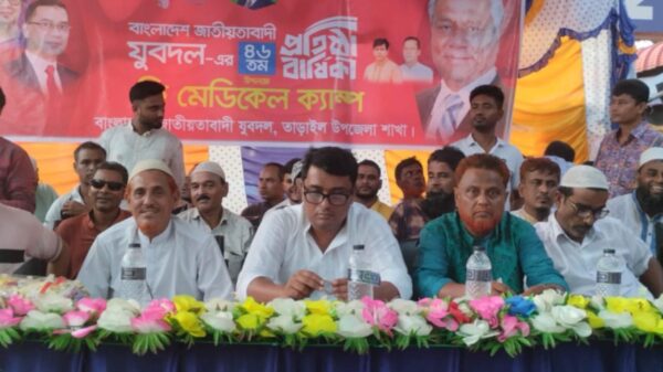 স্টাফ রিপোর্টার হুমায়ুন রশিদ জুয়েল : কিশোরগঞ্জে তাড়াইলে বাংলাদেশ জাতীয়তাবাদী যুবদলের ৪৬ তম প্রতিষ্ঠাবার্ষিকী পালিত হয়েছে। এতে লক্ষ্য করা গেছে, উপজেলা যুবদলের আয়োজনে ও উপজেলা বিএনপি ফ্রি মেডিকেল ক্যাম্প, রক্তদান