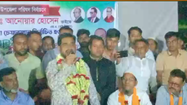 মোঃ মাসুদ খান, নরসিংদী জেলা প্রতিনিধি: নরসিংদীর সদর উপজেলা পরিষদের নির্বাচনে বিপুল ভোটে জনাব মোঃ আনোয়ার হোসেন উপজেলা চেয়ারম্যান নির্বাচিত হওয়ায় জনগণের ভালোবাসার প্রকাশ করেন । আন্তরিক শুভেচ্ছা ও
