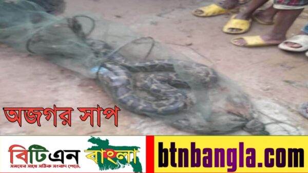 ওসমান গনি মুন্সীগঞ্জে জেলা প্রতিনিধিঃ মুন্সীগঞ্জে গজারিয়া উপজেলা একটি নদীতে পাতানো ডুব জালে ধরা পড়েছে বিশাল আকৃতির অজগর সাপ গজারিয়া উপজেলার ঢাকা চট্টগ্রাম মহাসড়কে ভাটেরচর বাস স্ট্যান্ড সংলগ্ন এলাকার কামাল
