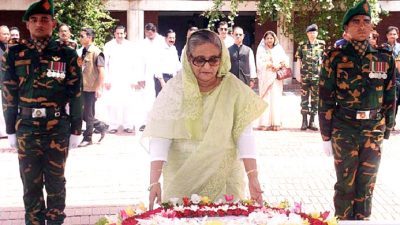 গোপালগঞ্জের টুঙ্গিপাড়ায় জাতির জনক বঙ্গবন্ধু শেখ মুজিবুর রহমানের সমাধিতে পুষ্পস্তবক অর্পণ করেছেন প্রধানমন্ত্রী শেখ হাসিনা। শনিবার বেলা ১১টায় সমাধিতে পুষ্পস্তবক অর্পণ ও শ্রদ্ধা নিবেদন করেন তিনি। এরপর সেখানে কিছুক্ষণ নীরবে