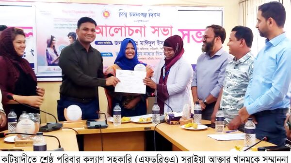 মাইনুল হক মেনু, স্টা রিপোর্টার : ‘ন্যায্য ও সম্ভাবনাময় বিশ্বে পছন্দের পরিবার গড়তে প্রয়োজন তারুণ্যের ক্ষমতায়ন’ এই প্রতিপাদ্যকে সামনে নিয়ে কিশোরগঞ্জের কটিয়াদীতে বিশ্ব জনসংখ্যা দিবস উপলক্ষে আলোচনা সভা অনুষ্ঠিত