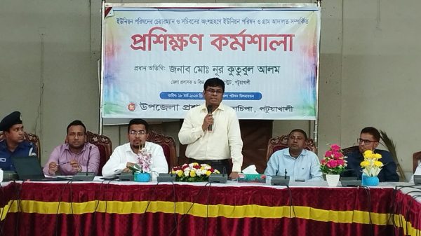 মিঠুন পাল, পটুয়াখালী জেলা প্রতিনিধি স্থানীয় সরকারের তৃণমূল পর্যায়ে ইউপি চেয়ারম্যান, সচিবদের গ্রাম আদালত ব্যবস্থাপনা, সক্রিয়করণ বিষয়ে গলাচিপা উপজেলার ১২ টি ইউনিয়ন ও ১ টি পৌরসভার নির্বাচিত চেয়ারম্যান ও